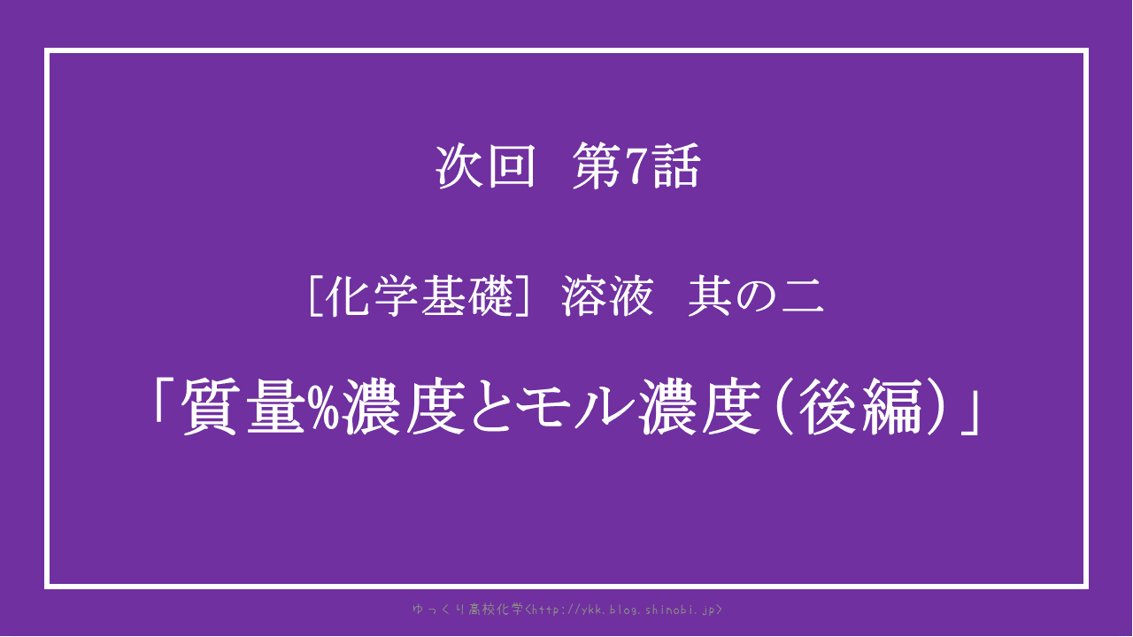 第6話「質量%濃度とモル濃度(前編)」